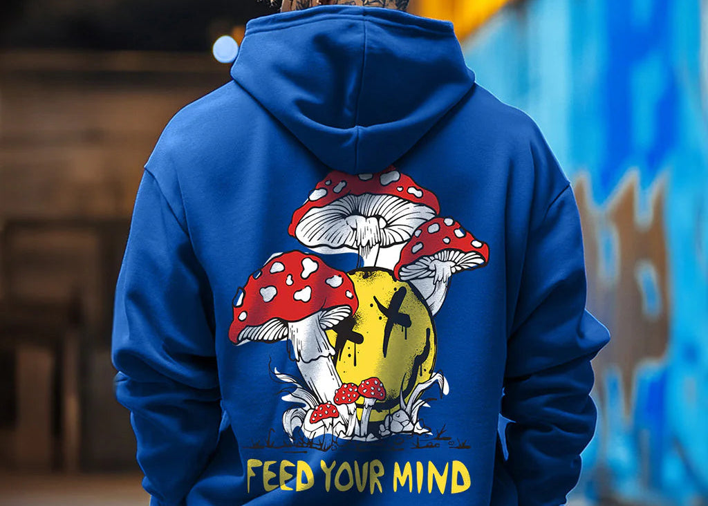 Cotton Blend Printed Full Sleeves Mens Hooded Neck T-Shirt